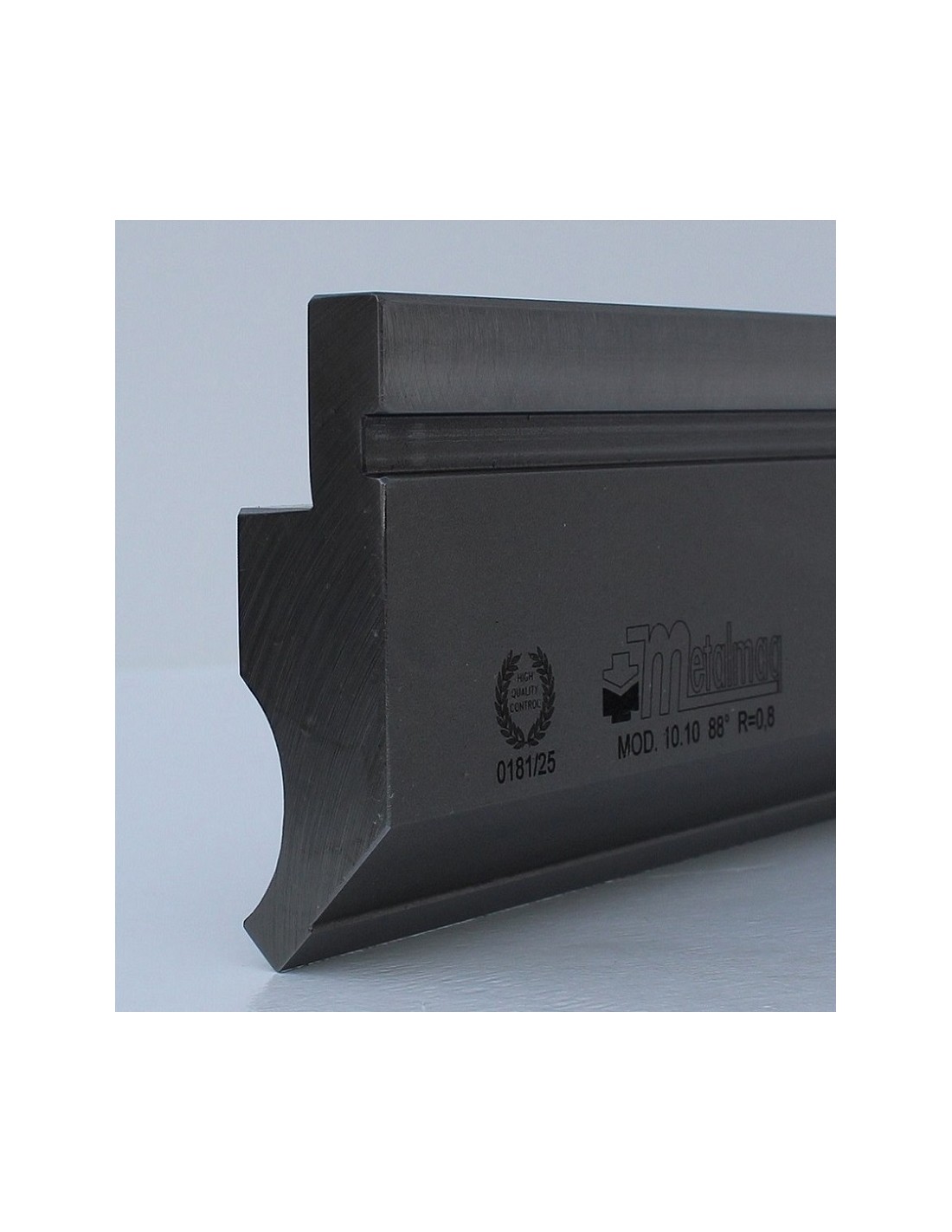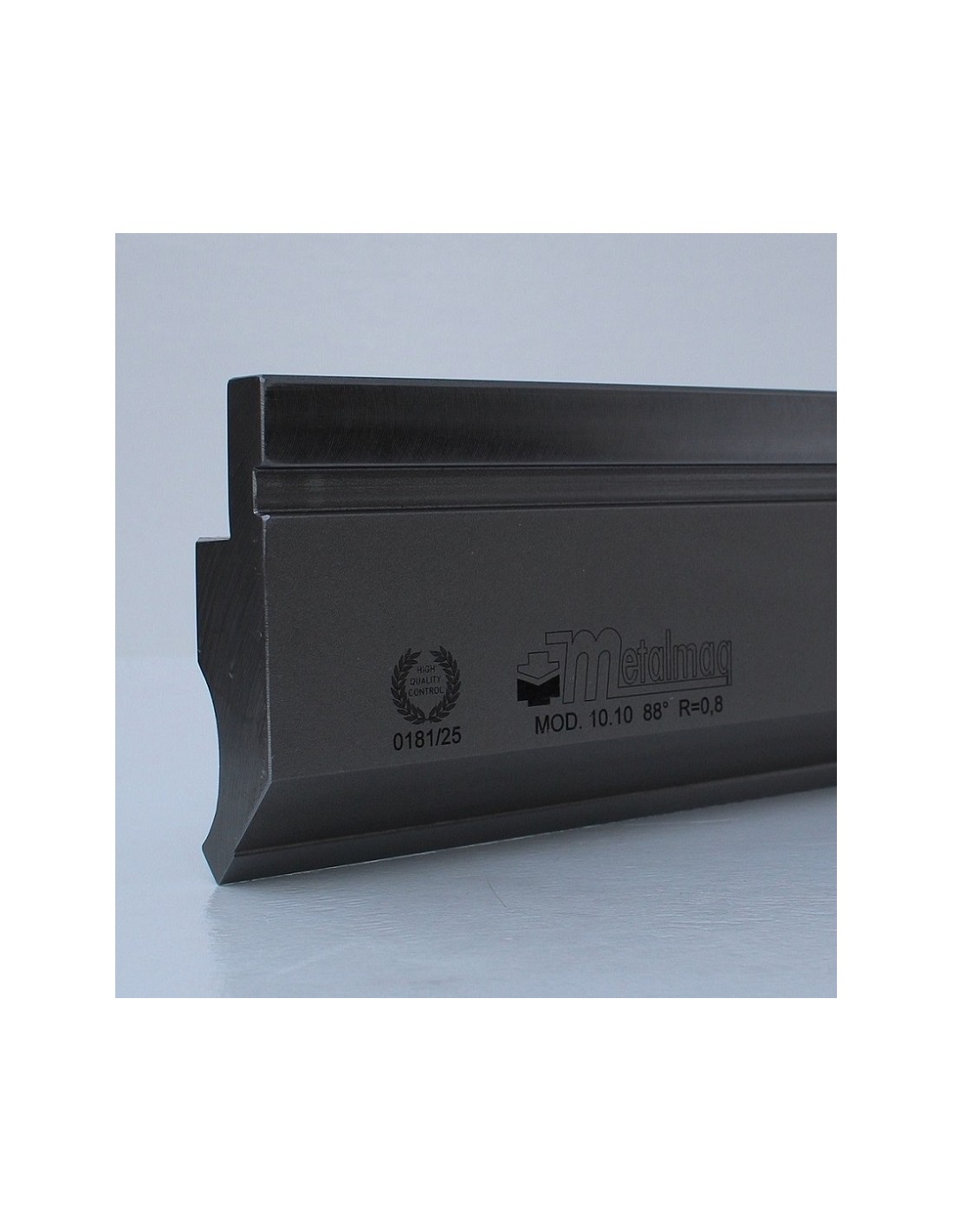 Poinçon PROMECAM mod. 10.10/90-88-85º, fabriqué en acier C-50 trempe à induction dans les zones de travail (avec une dureté 52-58 HRC) et rectifié.